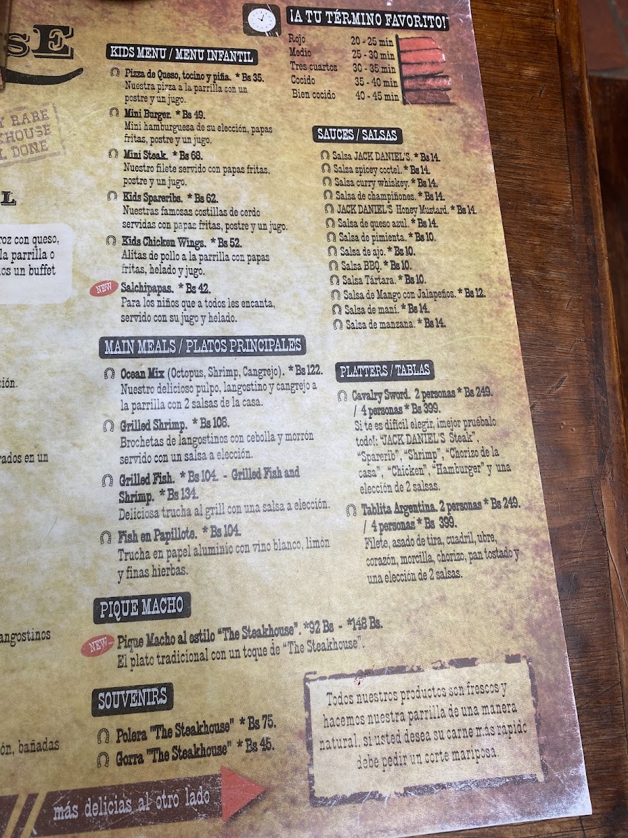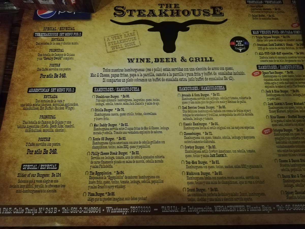 For travelers, the pricing is surprisingly reasonable, making it a must-visit culinary gem in Bolivia. Whether you're enjoying a relaxed dinner or celebrating a special occasion, The Steakhouse promises satisfaction with every bite.